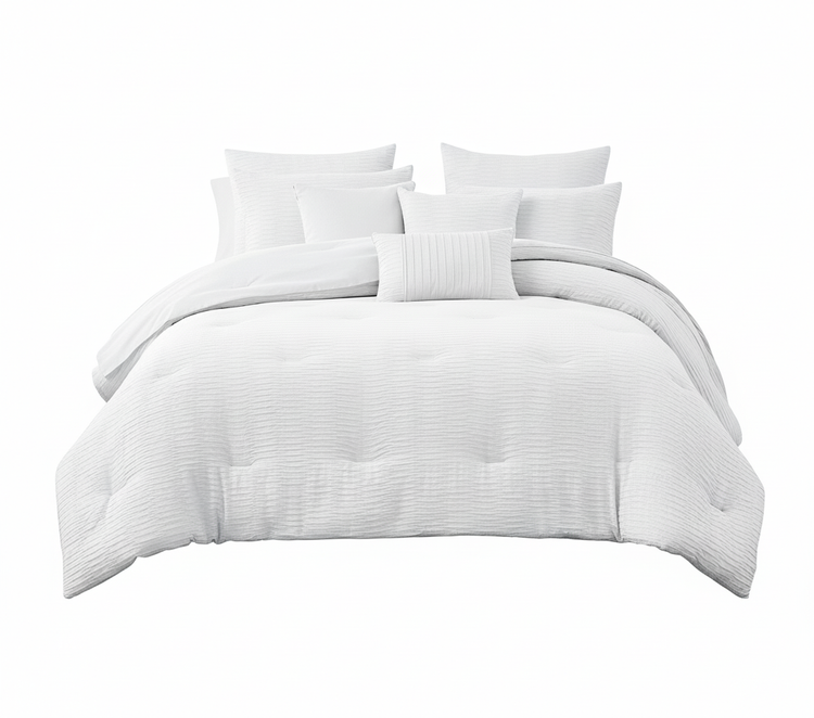Experience luxurious comfort and sophisticated style with the Bryce 8-Piece Waffle Jacquard Comforter Set from Madison Layne Collection.