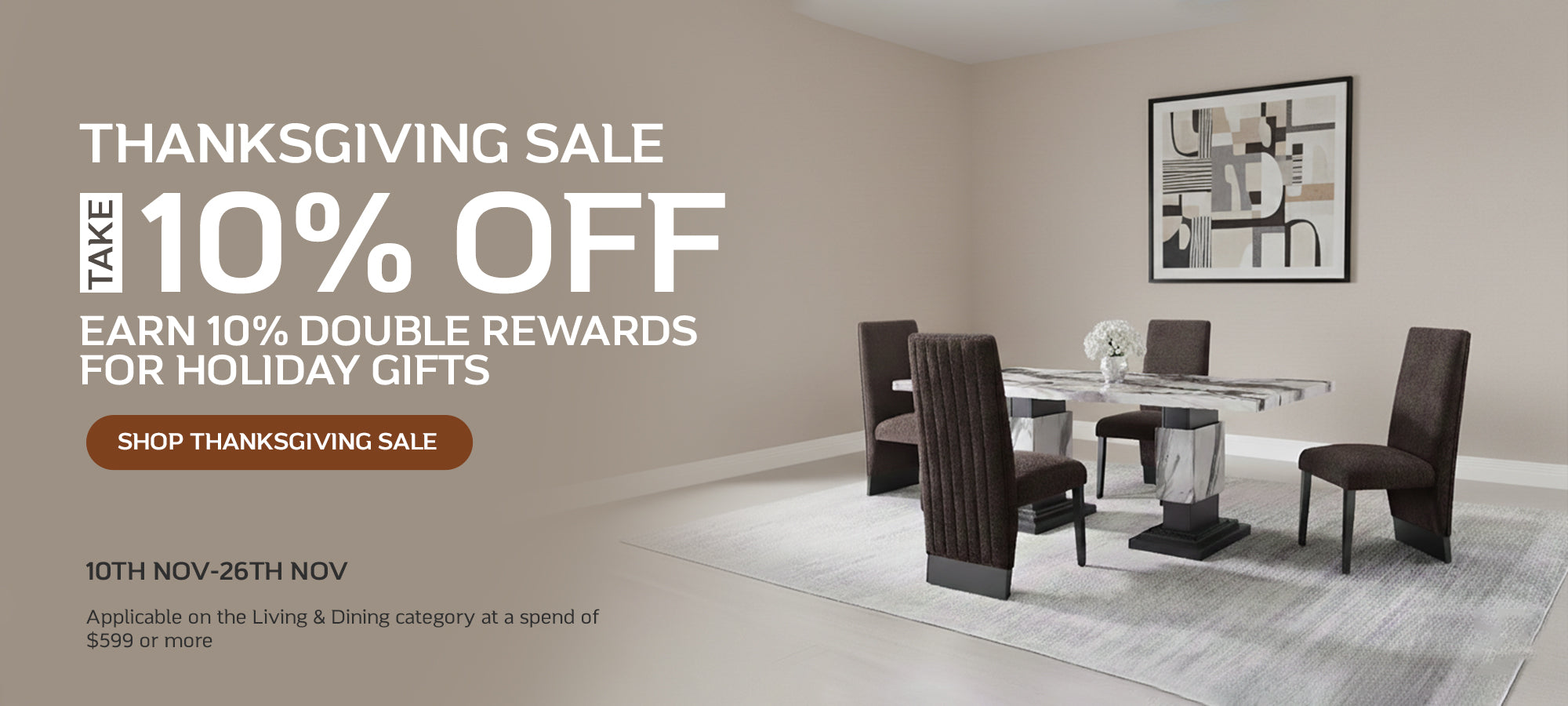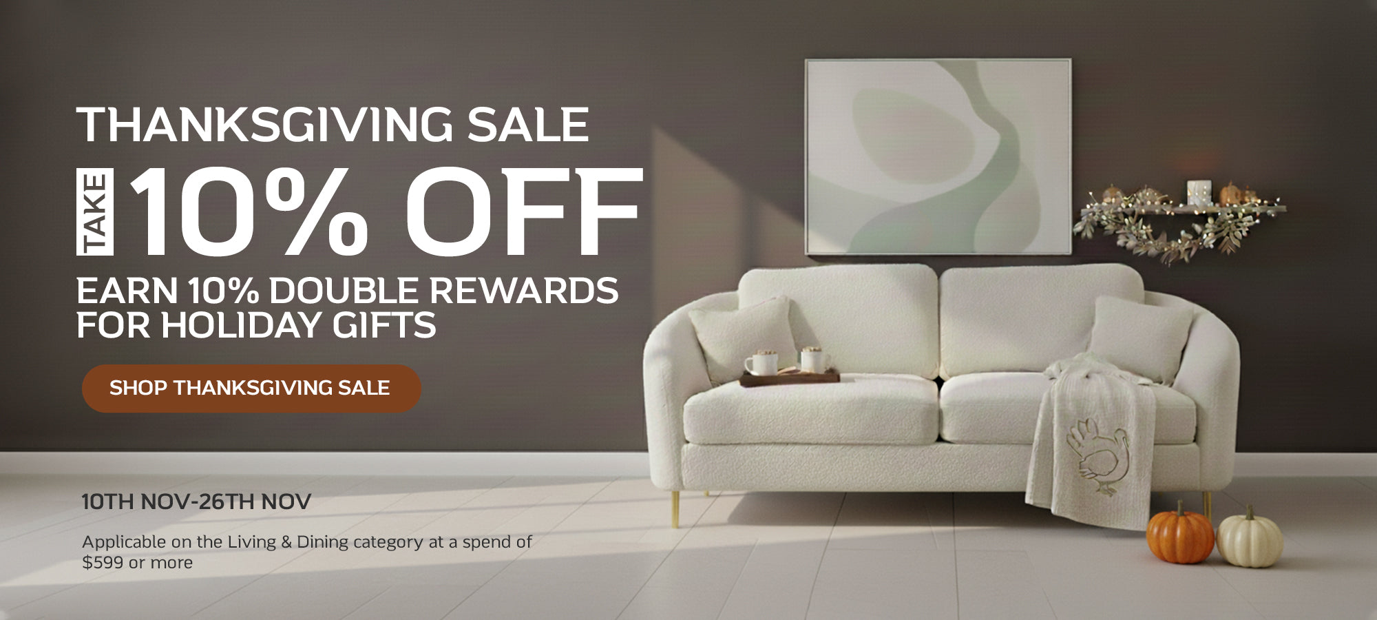 Your home should feel warm and welcoming this Thanksgiving. Get Flat 10% off at $599 or more and pocket 10% Rewards for all those Holiday gifts you haven't bought yet . No fine print surprises. Delivery that actually shows up on time. Real people to help when you need it.