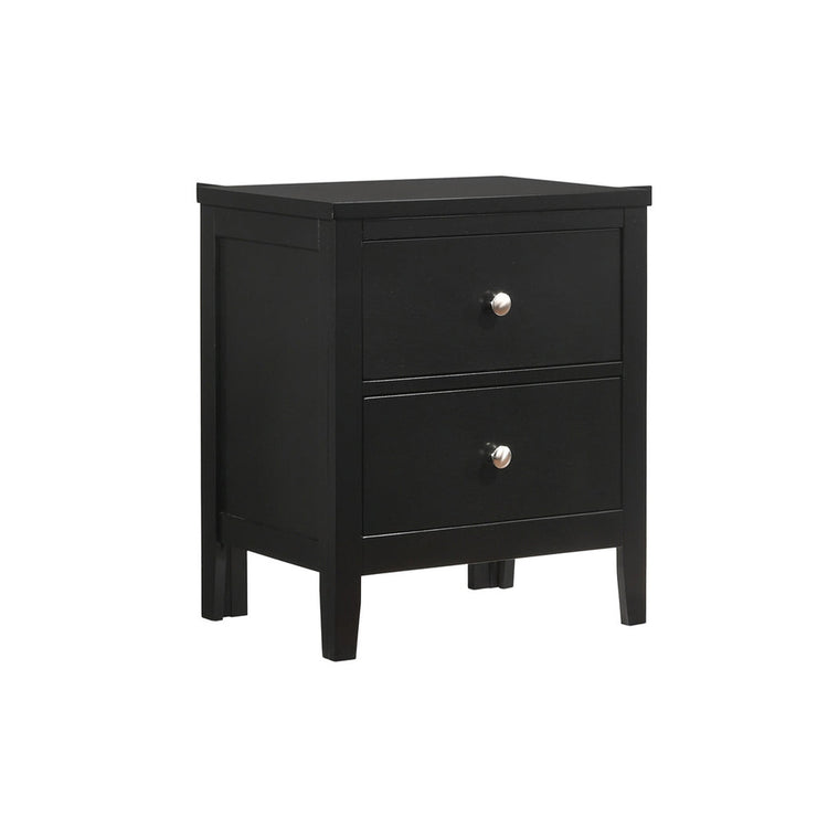 The Carlton 2-Drawer Nightstand from Dream Decor presents a sophisticated blend of black finish and stainless steel accents, offering a transitional style that complements various bedroom decors.