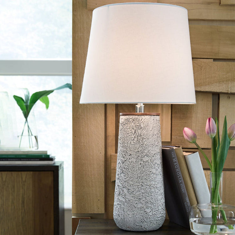 Modern industrial design in a new light. A mixed-media masterpiece, this table lamp with its heavily textured surface provides maximum interest and exceptional versatility.