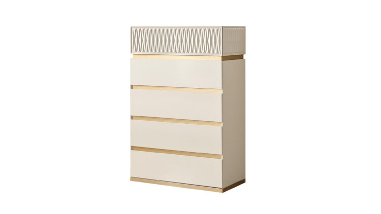 Made from solid and manufactured wood, it is stable and premium in feel. The gold and cream finish maintains a luxurious and Traditional aesthetic, complementing the bedroom set.